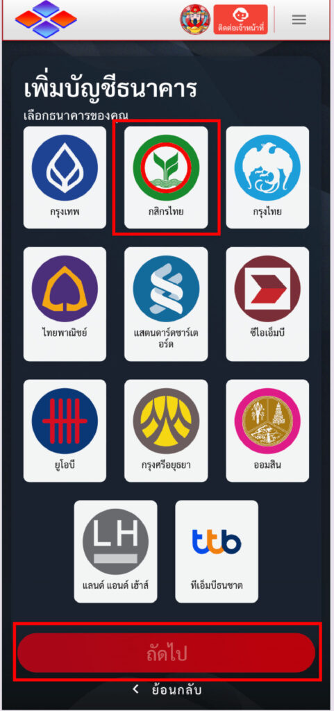 ขั้นที่ 2: เลือกธนาคารของคุณ และกดถัดไป