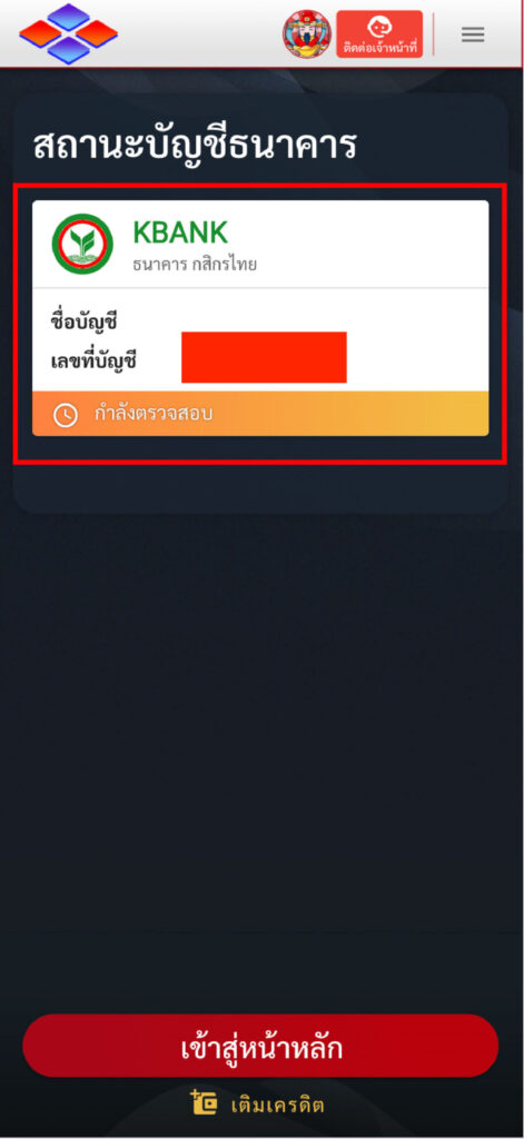 ขั้นที่ 3: รอระบบตรวจสอบสถานะบัญชี